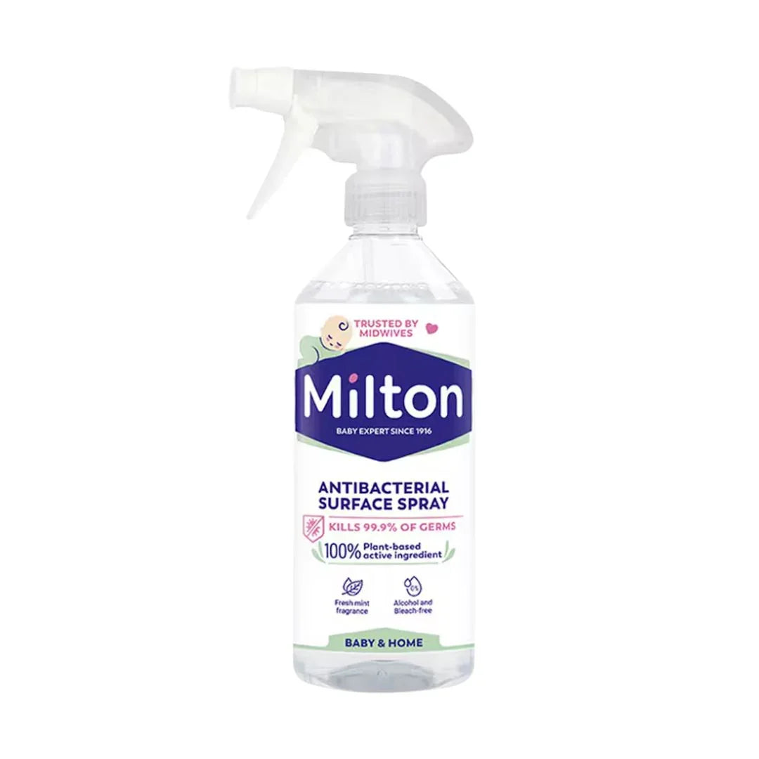 Milton Antibacterial Surface Spray offers a convenient 2-in-1 solution to clean and disinfect your home’s surfaces effectively. Its bleach-free and alcohol-free formula kills 99.9% of germs, including viruses, making it ideal for maintaining a hygienic environment that protects your baby’s delicate immune system.